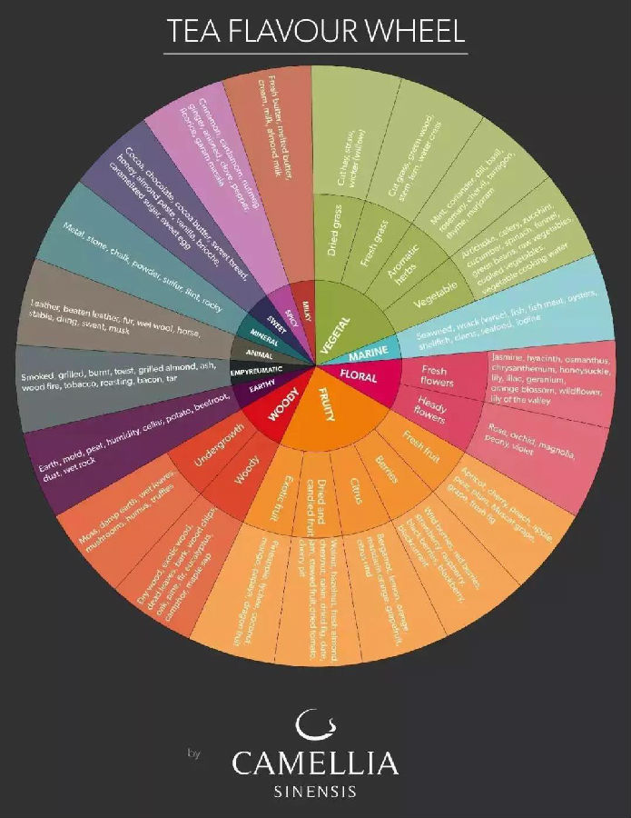 这张图是外国人总结的茶叶口感味道表,是目前各个茶协会和茶商推出的味道表中相对客观的一张。粗略地将茶叶的口感和味道分为十二大类:植蔬味、果味、花味、木香、海产类、土...